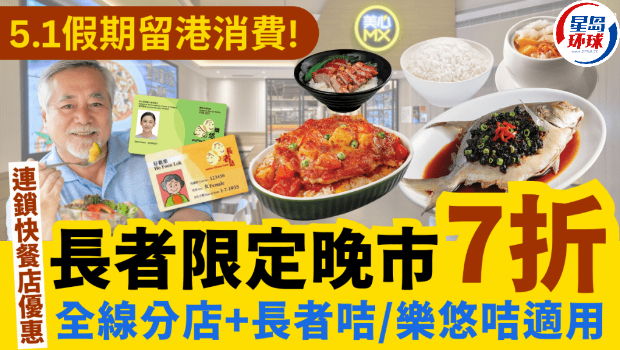5.1限定長者晚市7折優惠!全線分店適用