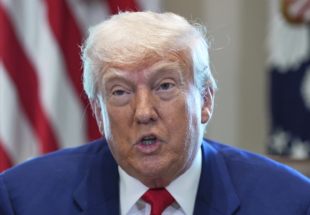 ▲美國總統特朗普4月30日在白宮舉行內閣會議的神情。(美聯社)