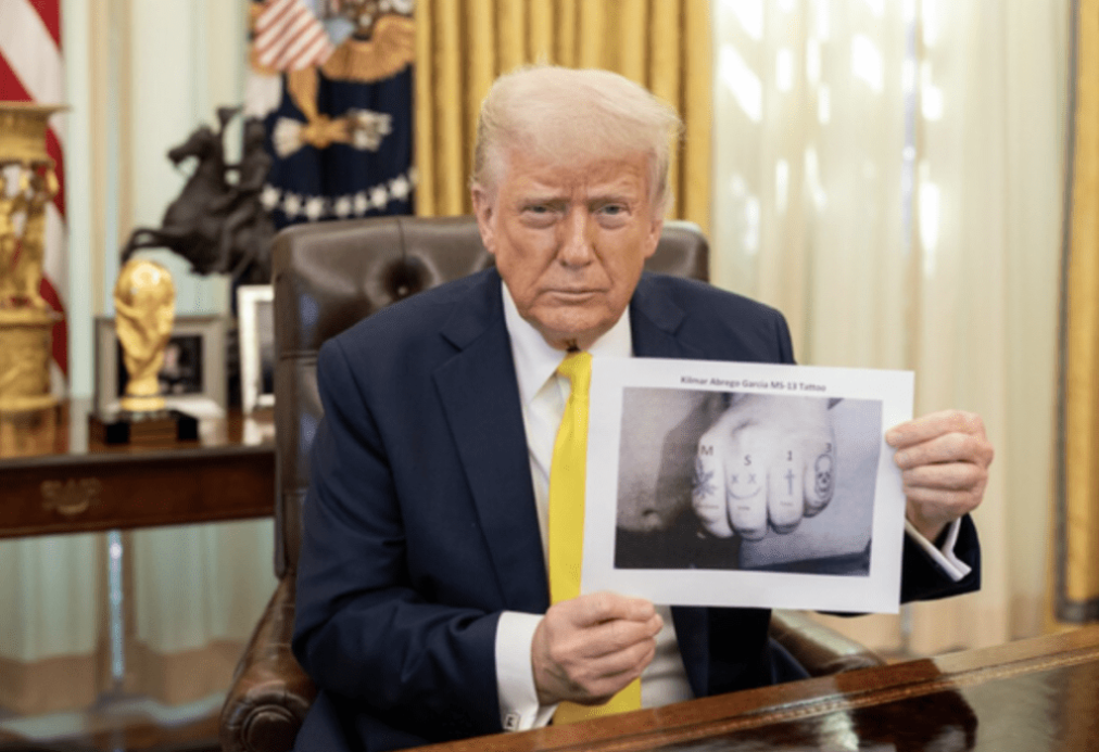 在專訪中,當莫蘭質疑特朗普政府將馬里蘭州男子阿布雷戈·加西亞(Kilmar Abrego Garcia)遣返至薩爾瓦多的正當性,以及他是否真與惡名昭彰的MS-13幫派有關時,特朗普聲稱加西亞手上有“MS-13”紋身,并展示一張相關照片。然而該照片早已遭外界質疑為經過數碼修改,且無其他證據證明他與幫派有聯系。