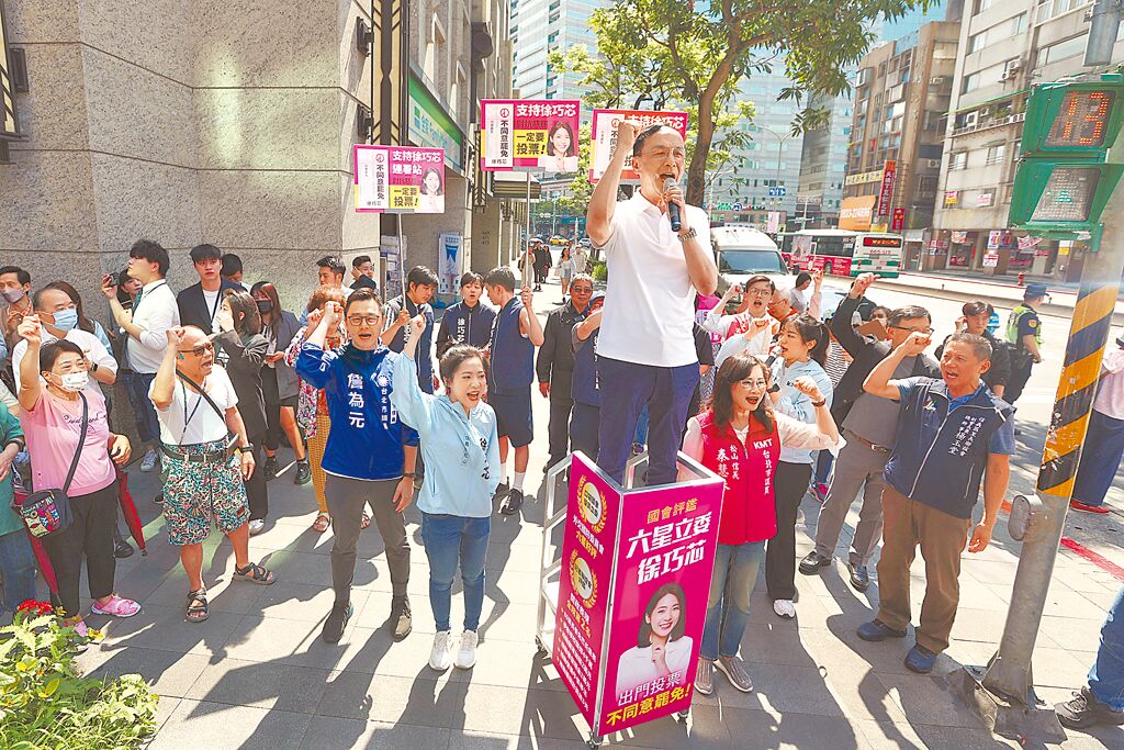 ▲國民黨主席朱立倫(中)2日前往臺北市永春市場外就“反惡罷戰獨裁”進行街講。中時