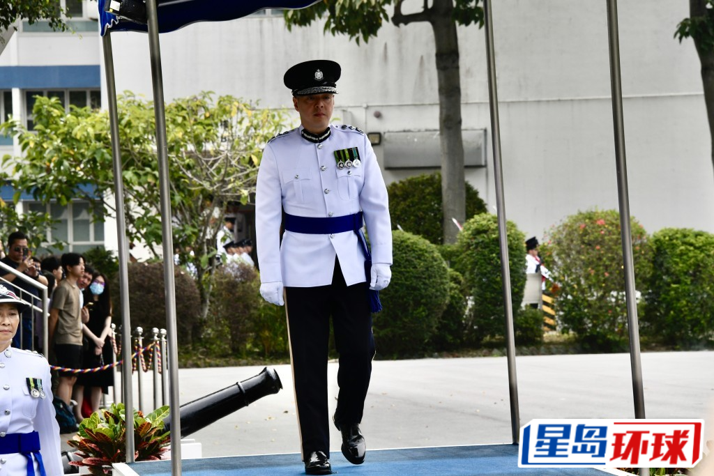 ▲警務處處長周一鳴檢閱首屆“學警預備訓練課程”學員。蘇正謙攝