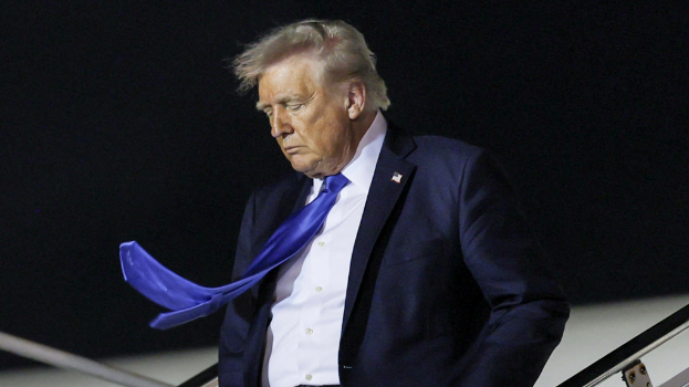 ▲2025年5月1日,美國總統特朗普抵達佛羅里達州棕櫚灘國際機場,自空軍一號下飛機。(路透社)
