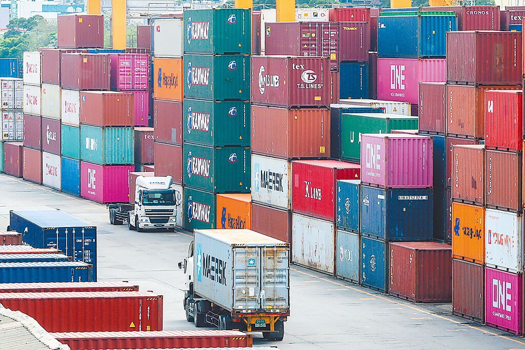 ▲郭正亮質疑,臺灣出口制造業跟美國有關的超過3萬家,政府為何不提醒作避險?圖為等待出口的貨柜。(示意圖/資料照)