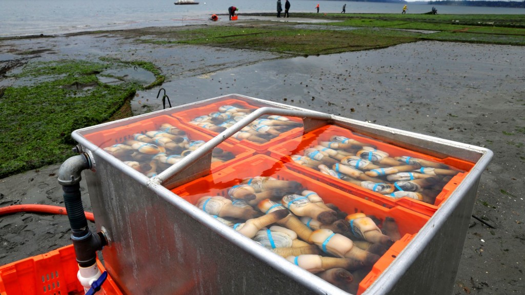每年出口中國內地數百萬磅的象拔蚌主要來自兩大來源:其一是野生捕撈,分布在由華盛頓州自然資源部與普吉特灣條約原住民族部落共同管理的海底區域;其二則是潮間帶養殖場。州政府將其配額拍賣給私人出口商,由出口商雇用潛水員捕撈。華盛頓州自然資源部水域資源處處長里夫斯指出,截至4月下旬,潛水員僅捕撈了預期產量的一半。