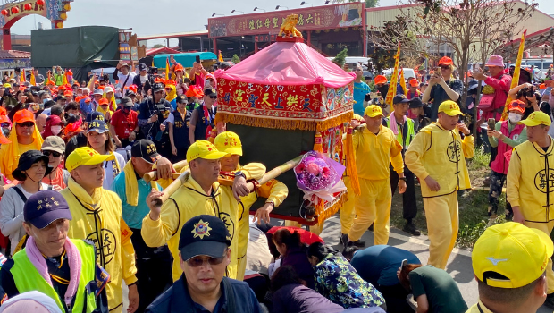 黃敬平不滿表示,排在后面的人,只因為前面有人拿“大罷免大成宮”的標語,就沒辦法鉆轎底。宗教歸宗教,如果想要利用白沙屯媽祖炒作大罷免,就是害到大家。