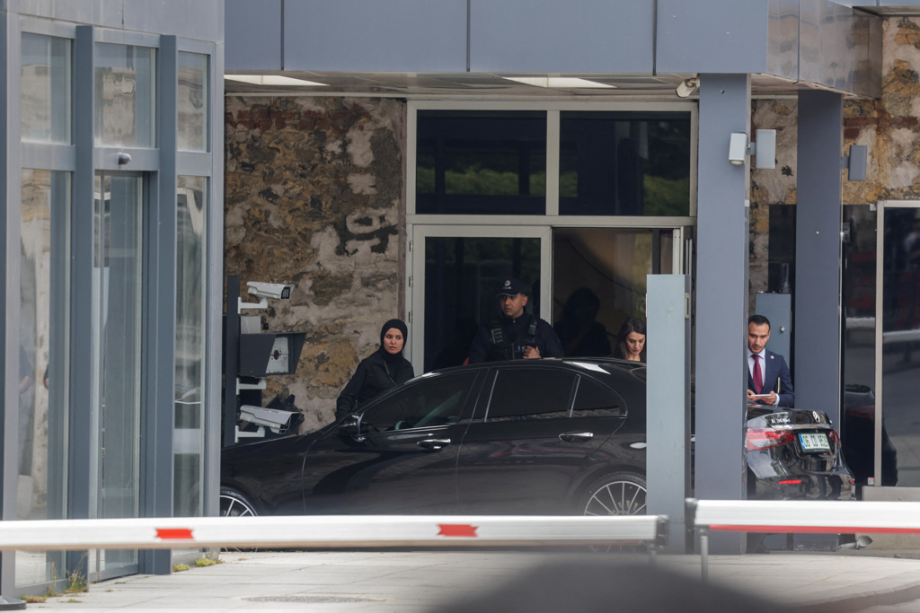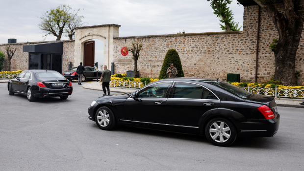 ▲俄方代表車輛16日抵達伊斯坦布爾多爾瑪巴赫切宮。(路透)