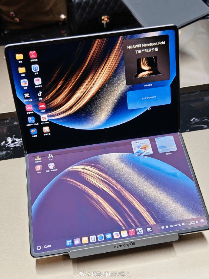 ▲全球首款鴻蒙折疊屏電腦華為 MateBook Fold。 微博