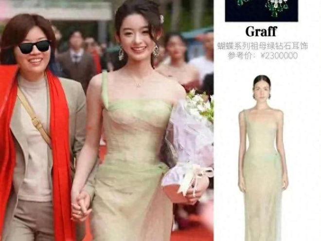 ▲17歲的黃楊鈿甜配戴身價逾200萬人民幣的翡翠耳環,是向母親借來。 微博@黃楊鈿甜