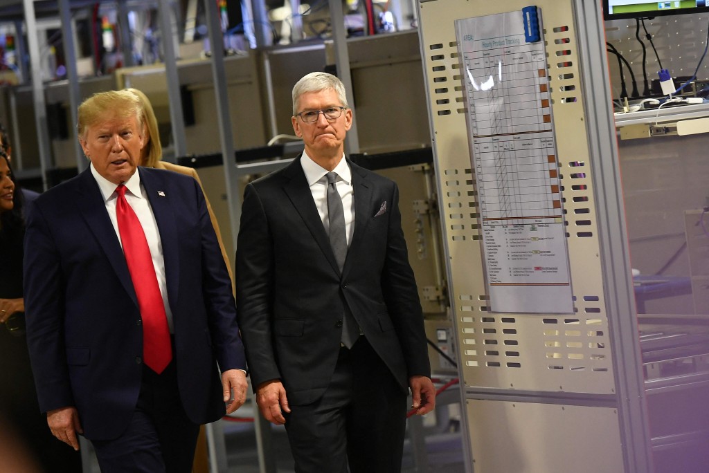 ▲特朗普希望庫克(右)能在美國生產和組裝iPhone。法新社