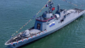 ▲朝鮮第二艘“崔賢”級驅逐艦下水時失衡,導致船尾落水,艦艏仍留在船臺受損。微博@包容萬物恒河水