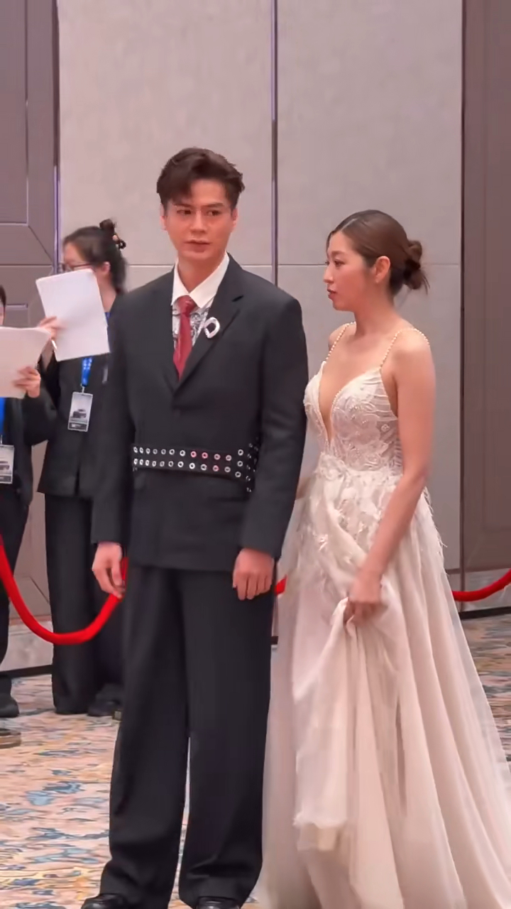 羅子溢站在陳自瑤身旁,雖然旁邊是一位絕色美女兼且打扮性感,不過羅子溢卻神色凝重,似乎是在專注在后時間的領獎流程,對于陳自瑤走光,他似是完全察覺不到。而入場之后,陳自瑤翹實羅子溢在鏡頭前擺甫士影相,羅子溢多次貼心地提示陳自瑤鏡頭的位置,非常照顧對手。