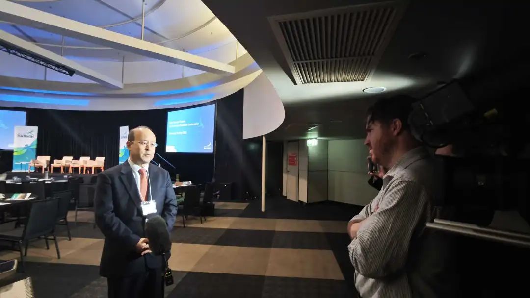▲肖千大使就達爾文港問題接受中澳媒體采訪 圖源:中國駐澳大利亞大使館