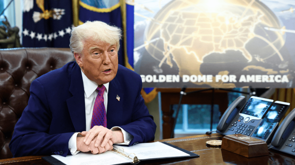 ▲特朗普公布“金穹”導彈防御系統發展規劃。 路透社
