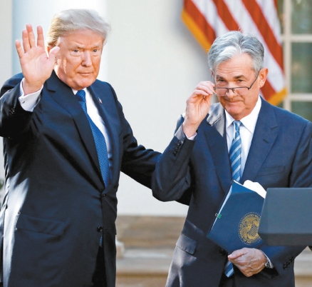 ▲特朗普29日在白宮會見鮑威爾。圖為兩人2017年會面。資料圖片