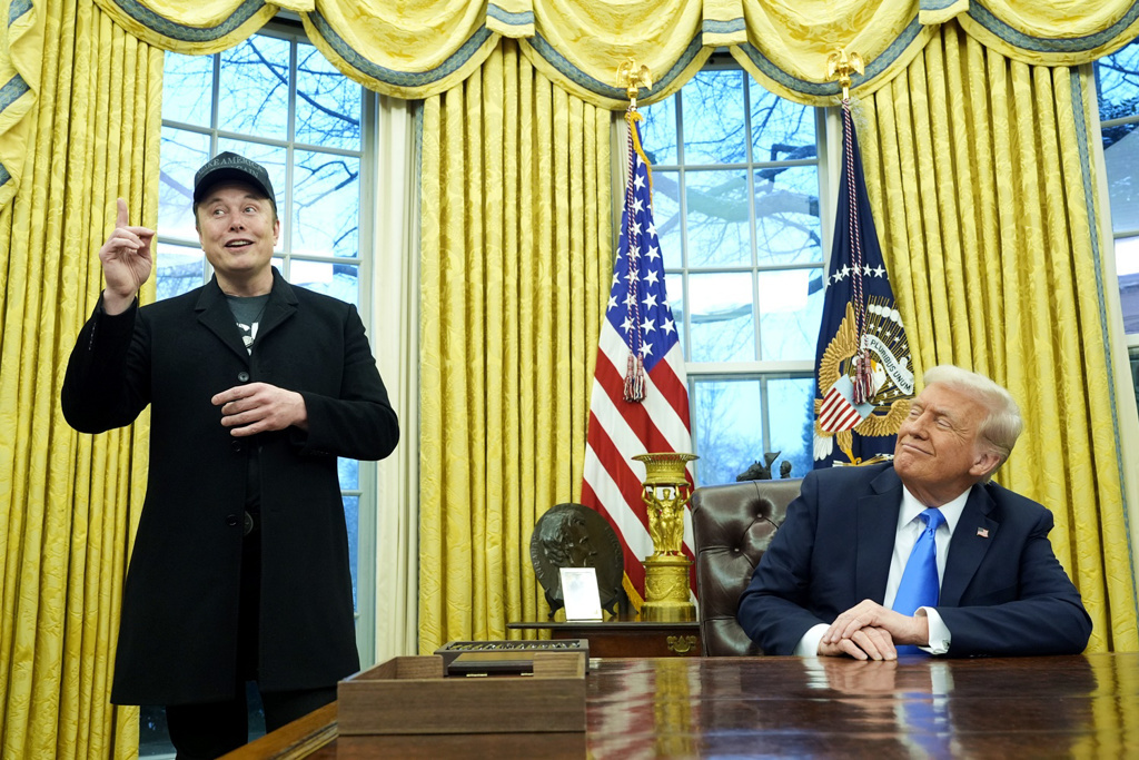 ▲圖為2月11日馬斯克與特朗普在白宮橢圓形辦公室。(美聯社)