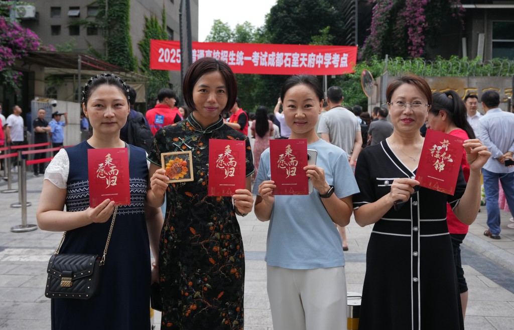 全國“2025年普通高校招生全國統一考試”(即全國高考)今日開始,一年一度家長送考生的場面再次上演。 和過去一樣,不少媽媽身穿大紅旗袍手持向日葵送子女進考場,希望孩子“旗開得勝”“一舉奪魁”。