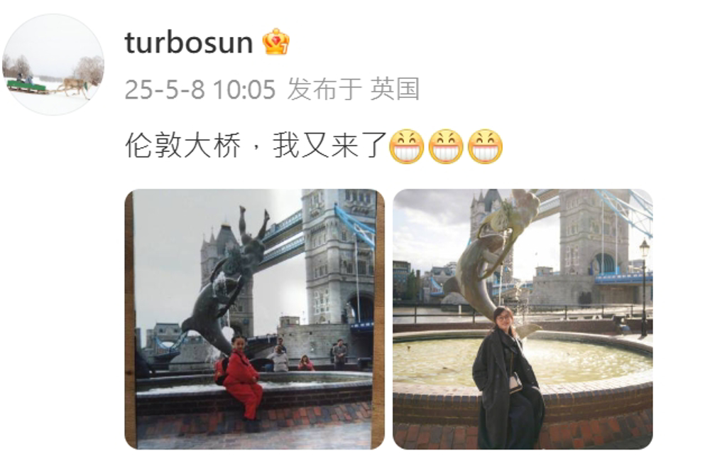 ▲孫儷5月初在微博曬出兩張倫敦塔橋照片。(圖/翻攝自孫儷 微博)