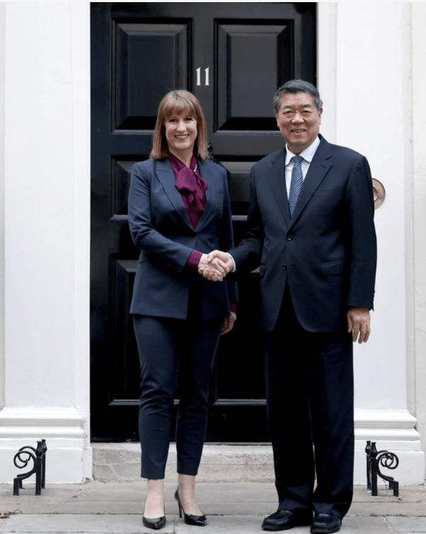 ▲新華社報道,中英經濟財金對話中方牽頭人、國務院副總理何立峰周一(9日)在倫敦會見對話英方牽頭人、英國財政大臣里夫斯(Rachel Reeves),就中英經濟財金合作和雙方共同關心的問題深入交換意見。新華社