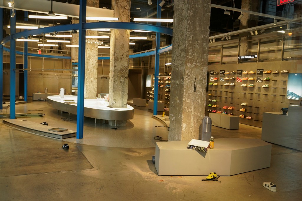▲Adidas被人搶劫一空。路透社