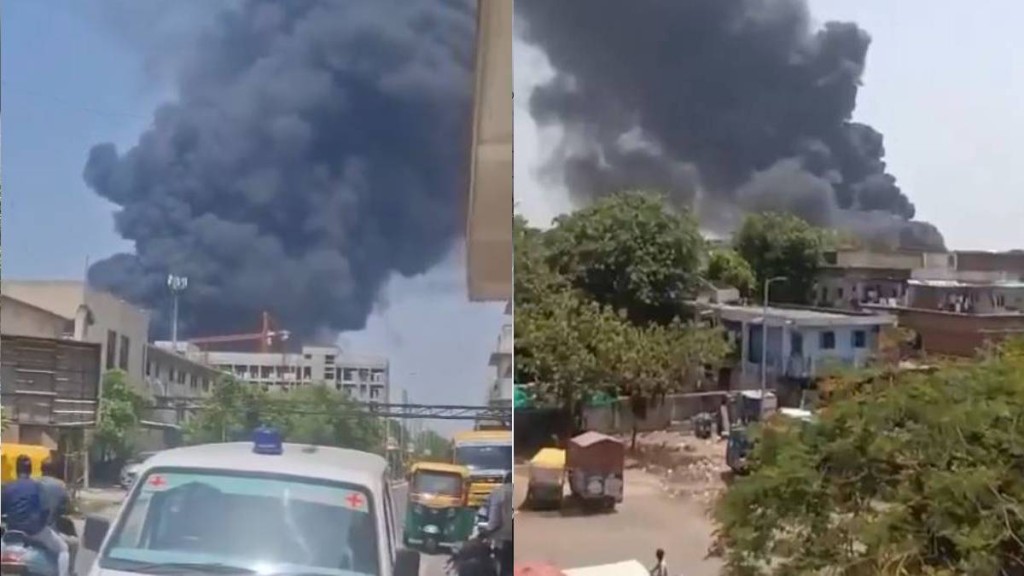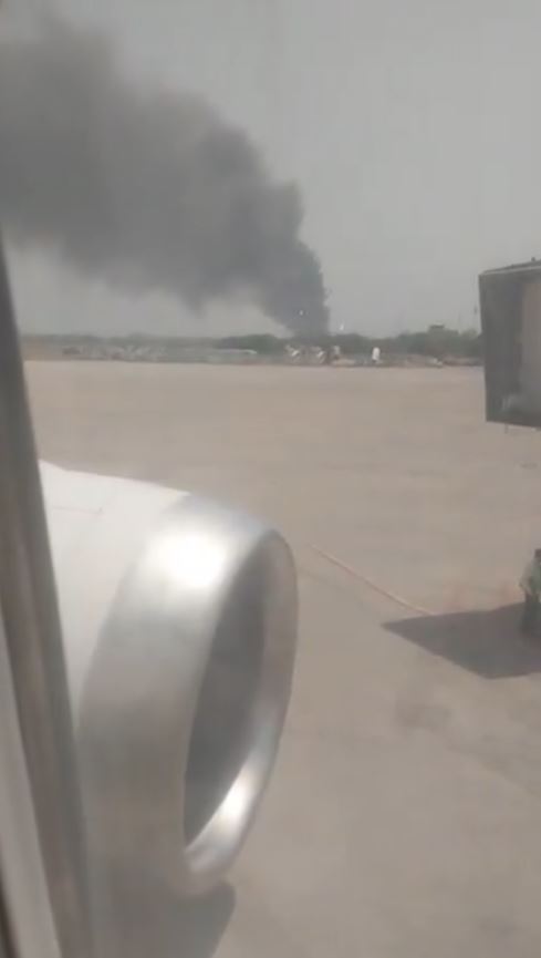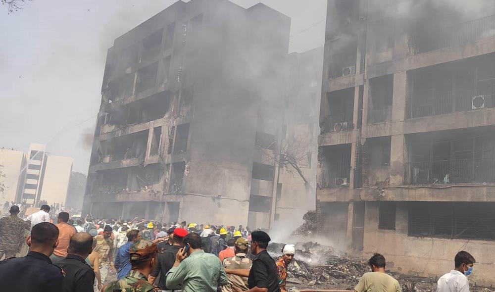 ▲飛機在印度艾哈邁達巴德機場墜毀后,現場冒起濃煙。圖源:《今日印度》