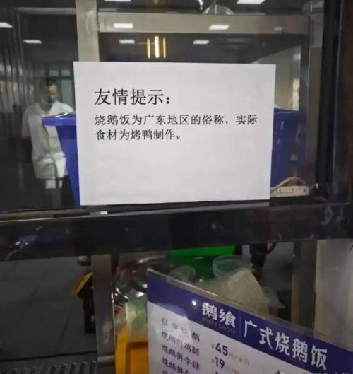 雖然很多人分不清燒鵝和烤鴨的口感,但也知道二者是有分別的,特別是售價。6月9日,湖北武漢大學醫學部杏園食堂三樓,新開業了一家“鵝饗廣式燒鵝飯”。這原本沒什么稀奇,但門店玻璃上一張短短20個字的“友情提示”,卻在網上引發了不小的波瀾,甚至讓許多廣東人感到憤怒。