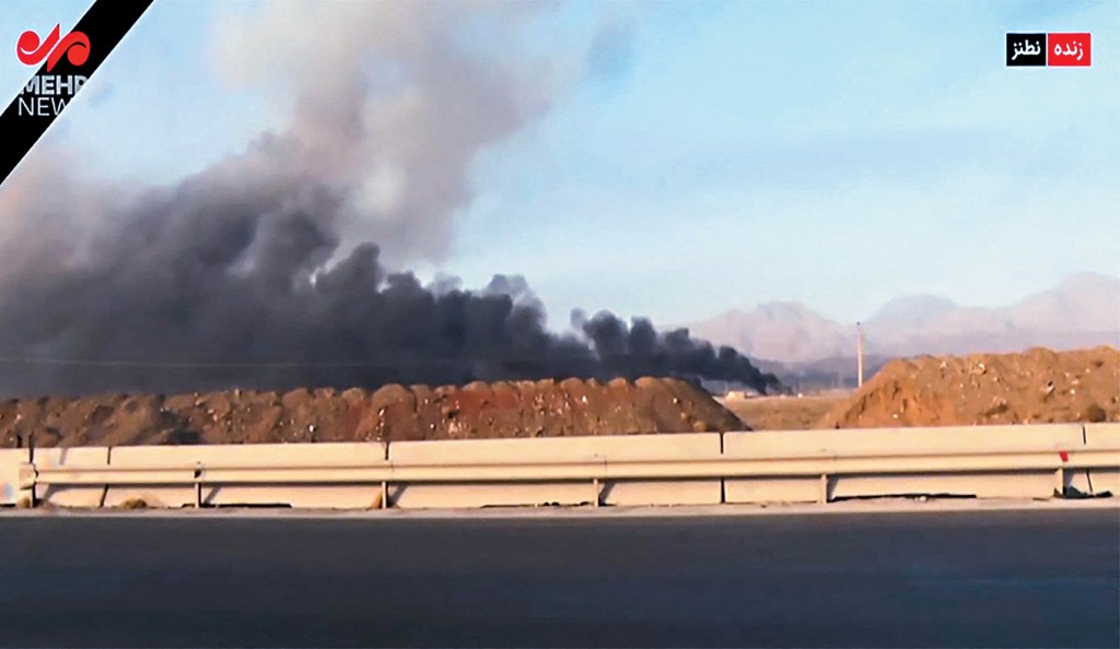 ▲以軍空襲后,伊朗中部納坦茲的核設施發生爆炸冒煙。