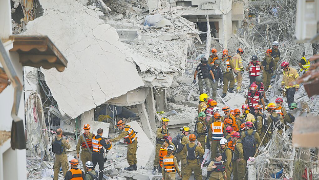▲伊朗報復以色列,向耶路撒冷和特拉維夫等地發射數百枚彈道導彈。圖為以色列安全部隊檢查被伊朗導彈擊中的房屋。美聯社