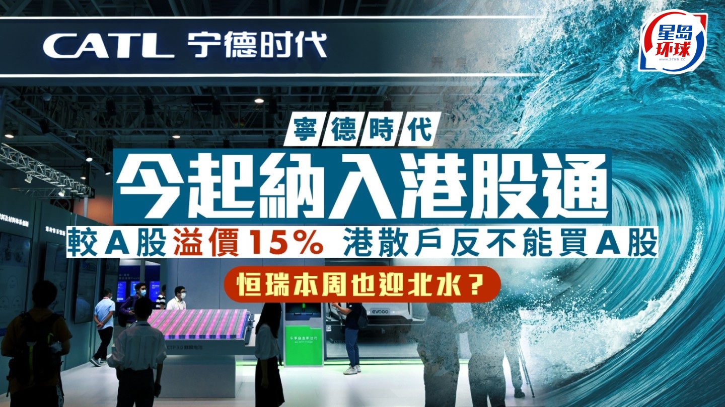 今年焦點新股寧德時代(3750)周六(14日)在港市場價格穩定期結束、且相應A股上市滿10個交易日,獲上交所調入港股通名單及周一(16日)起生效。該股上周五收報313元,較上市價高19%之余,亦較寧德時代A股(300750)溢價逾15%。由于內地投資者今日起將可以買入寧德H股,料進一步推高股份成交、甚或令溢價擴大;相反,香港散戶又能否買入具折讓的寧德A股?答案卻是不能。另一方面,同期上市的恒瑞醫藥(1276)最快何時獲調入港股通呢?