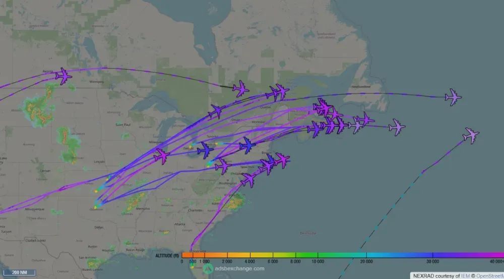 據環球時報援引報道,飛行軌跡數據圖顯示,有26架KC-135和KC-46加油機從美國境內多地起飛向東穿越大西洋。報道稱,這類加油機的主要功能是為參與遠離本土基地實施空襲的軍用機進行加油,目前跨大西洋飛行的飛機數量仍在上升,數字約在30架以上。