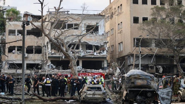 ▲6月16日,在以色列特拉維夫,應急和救援人員在一處導彈襲擊現場開展工作。新華社