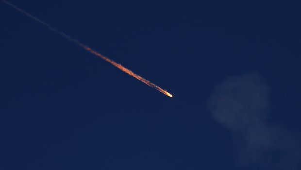 ▲一枚碎片從空中墜落,在以色列與伊朗沖突期間,以色列“鐵穹”系統攔截來自伊朗的導彈后可見此景。(圖/路透)