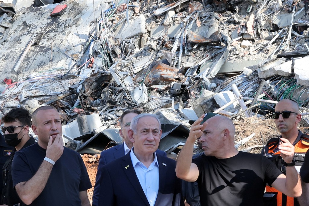 ▲內塔尼亞胡日前視察遭伊朗導彈擊中摧毀的一間科學研究院。路透社