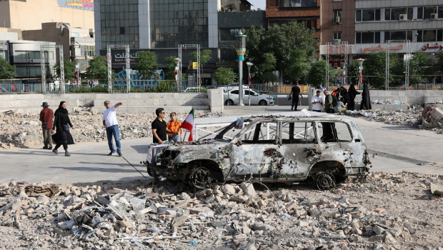 ▲德黑蘭有汽車在空襲中損毀。路透社