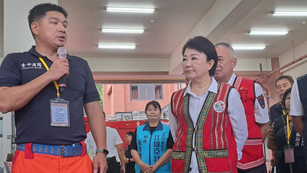 臺中市長盧秀燕27日啟動和平項目,先后拜訪和平區自由小學、博屋瑪小學及雙崎派出所與消防分隊。不過盧秀燕在雙崎消防分隊致詞之際,現場傳2聲槍響,讓現場人員轉頭四處尋找槍聲來源,盧以幽默方式化解民眾緊張,并詢問人員是否為禮炮?還要“警察局長”李文章去了解,原來為示范用瓦斯空氣槍聲,不小心提前試放。