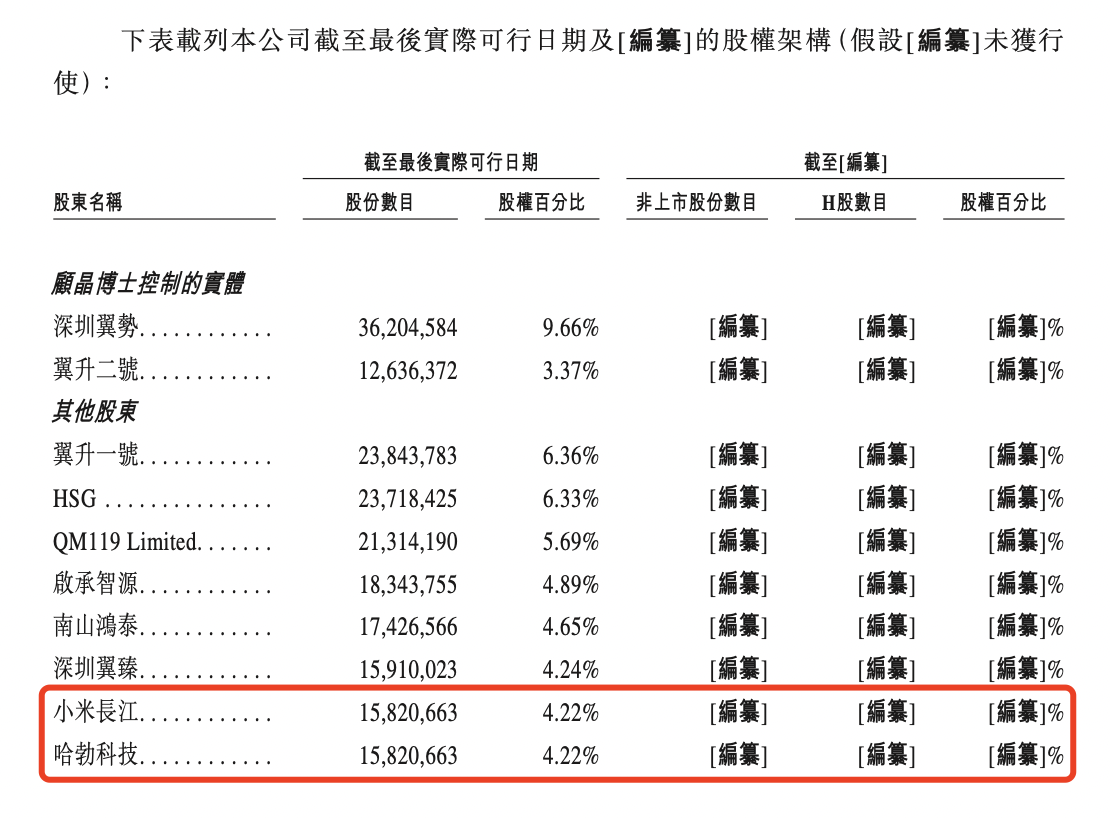 IPO前,董事長兼執行董事顧晶博士有權透過深圳翼勢及翼升二號控制已發行股份總數約13.03%,經計及深圳翼勢及翼升二號分別持有的36,204,584 股A類普通股及12,636,372股A類普通股所附的不同投票權,約占于公司股東大會上總投票權的59.97%。
