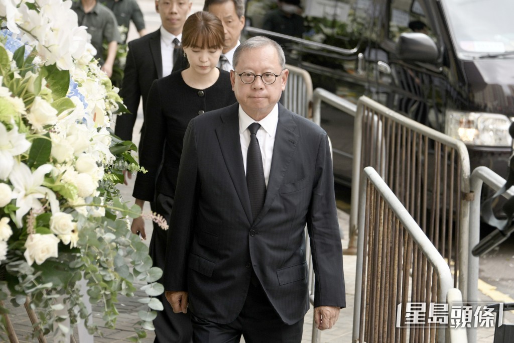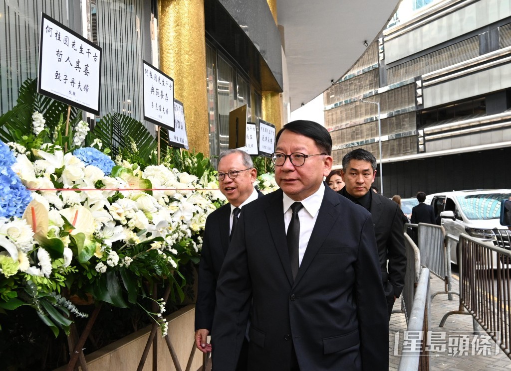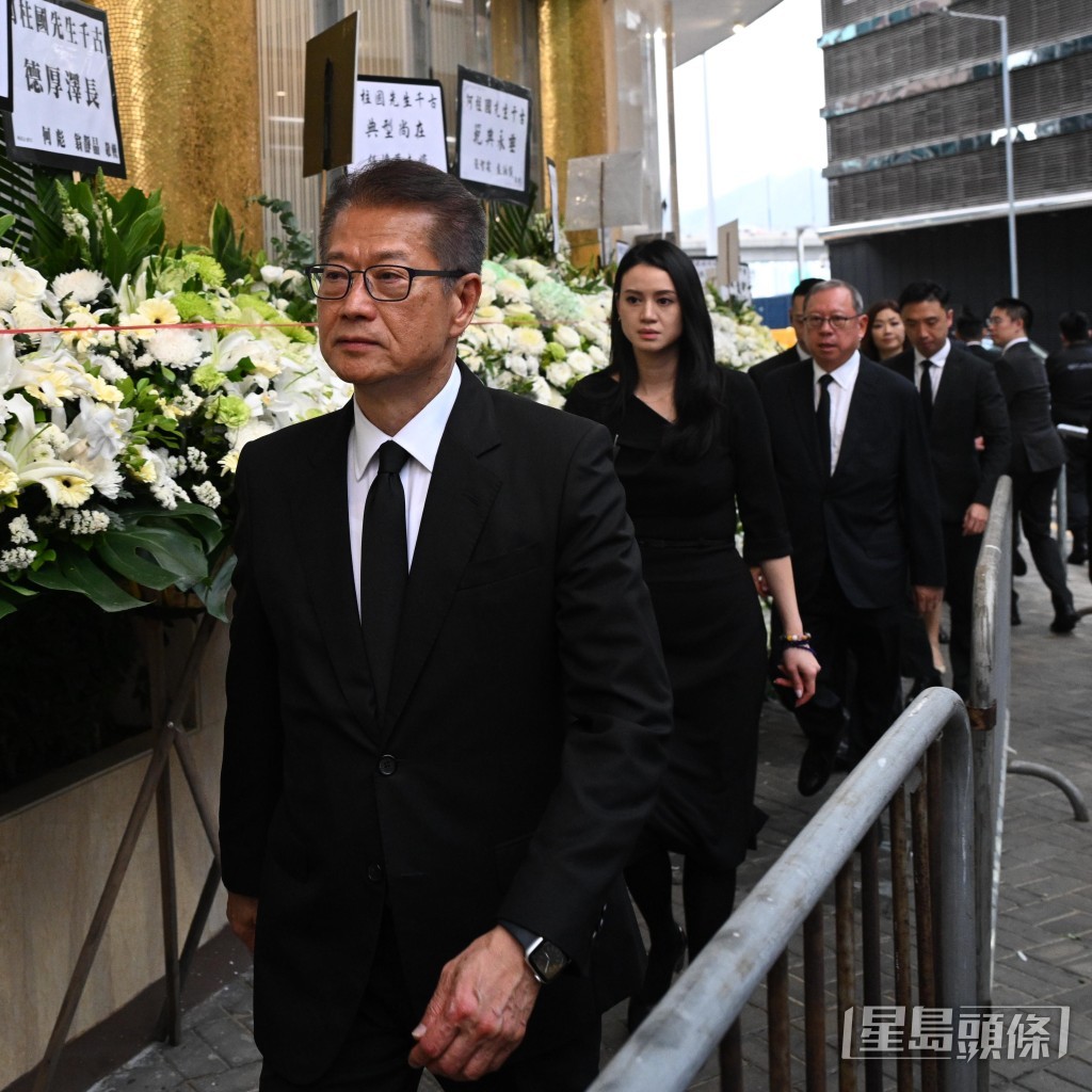 【16:30】全國政協常委唐英年、保安局局長鄧炳強、立法會主席梁君彥、旭日國際集團董事會主席蔡志明,及蘭桂坊集團主席盛智文等亦到場吊唁。