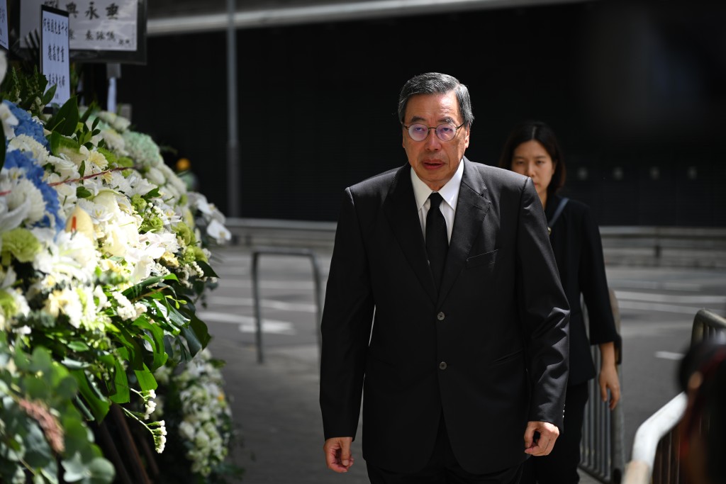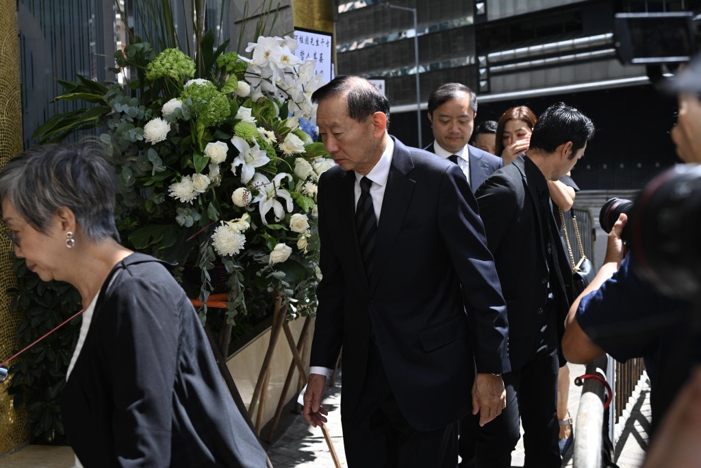 【11:57】喪禮近中午12時結束,到場來賓陸續離開香港殯儀館。