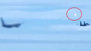 央視節目“礪劍”今日播出一段解放軍出動兩架殲-16戰機警告驅離沖闖領海線的外機影片。其實戰機不單雙機起飛,亦做出平行卡位的動作以及發紅外線彈(又稱紅外干擾彈),務求將外機驅離領海線。