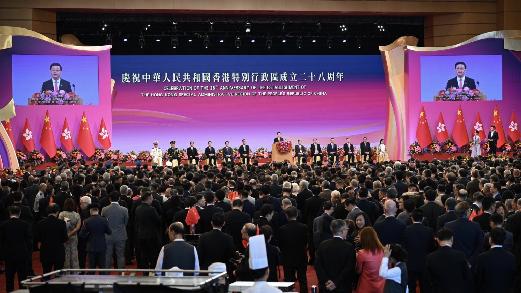 今天(1日)是香港回歸祖國28周年紀念日,特區政府早上于灣仔金紫荊廣場舉行升旗儀式,以及在會展舉行酒會慶祝。出席者包括行政長官李家超伉儷和政府高層官員,前特首林鄭月娥、梁振英夫婦、曾蔭權夫婦均有出席。不過,因身體不適缺席多年活動的前特首董建華,連續第五年未有出席升旗禮。