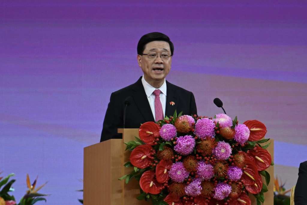 李家超于酒會致辭期間表示,上任3年來政府推動改革,建立穩定的香港,發展經濟改善民生陸續看見成果,亦改變了政府文化。本屆政府也完成23條立法,重建了安全的香港。