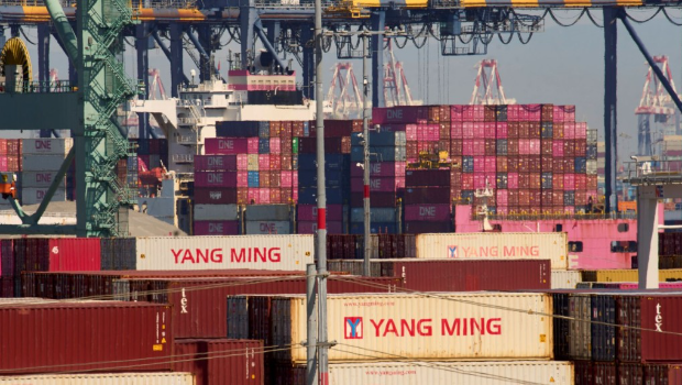 ▲特朗普關稅|貨柜停放在洛杉磯港。 美聯社