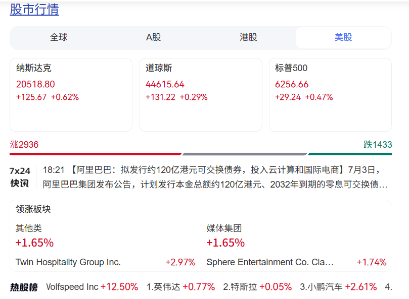 首頁>財經>金融市場 開盤:美股三大指數集體高開 發布時間:2025-07-03 21:40 7月3日電,美股三大指數集體高開,道指漲0.18%,納指漲0.57%,標普500指數漲0.38%。芯片設計軟件股新思科技漲超4%;Robinhood跌超2%,此前OpenAI否認與Robinhood代幣有關。小鵬汽車漲超3%,阿里巴巴跌超2%。周四美股將提前收盤,紐約證交所和納斯達克將于美東時間下午1點收盤。周五因獨立日假期,美國市場全天休市。 熱門文章 突發:美國一飛機墜毀,致大規模人員傷亡 特朗普來了?訪華豪華“CEO天團”出列,背后藏4大盤算 山東艦訪港︱山東艦停泊香港水域,傍晚舉行甲板招待會 李克強誕辰70周年,《人民日報》發文贊揚為黨和人民事業奮斗終身 臺媒:兩岸紅綠學者交流,澳門對談 彭博:特朗普與越南達成貿易協議,產地涉中國等地將征40%關稅 富士康據報要求中國員工由印度撤離,或影響iPhone 17生產效率 直言“臺灣沒人能打仗”,陳之漢曝真相:阿兵哥都生不如死 國民黨黨主席改選,胡志強吁朱立倫,全力支持盧秀燕 美政府取消對華EDA出口限制,三大芯片軟件商恢復對華供貨 專題 更多 > 中芯國際上半年營收預計超22億美元,四季度將試產7nm工藝 太興盈喜料多賺逾3倍,指將堅守審慎理財政策 中國移動半年多賺5%,中期息增近6% 清華女學霸創業、一年一融資,鎂佳股份估值9.3億美元沖刺港交所 應收賬款走高,豐沃股份三成收入打“白條” 惠科股份IPO:獲政府補助超53億,向實控人堂弟采購超8億 關稅戰|白宮:特朗普簽行政命令,對華關稅暫緩期再延長90日 高盛:64%關稅成本由美企“買單”,消費者僅承擔22% 美媒:特朗普政府通過關稅施壓,要求買美國軍火