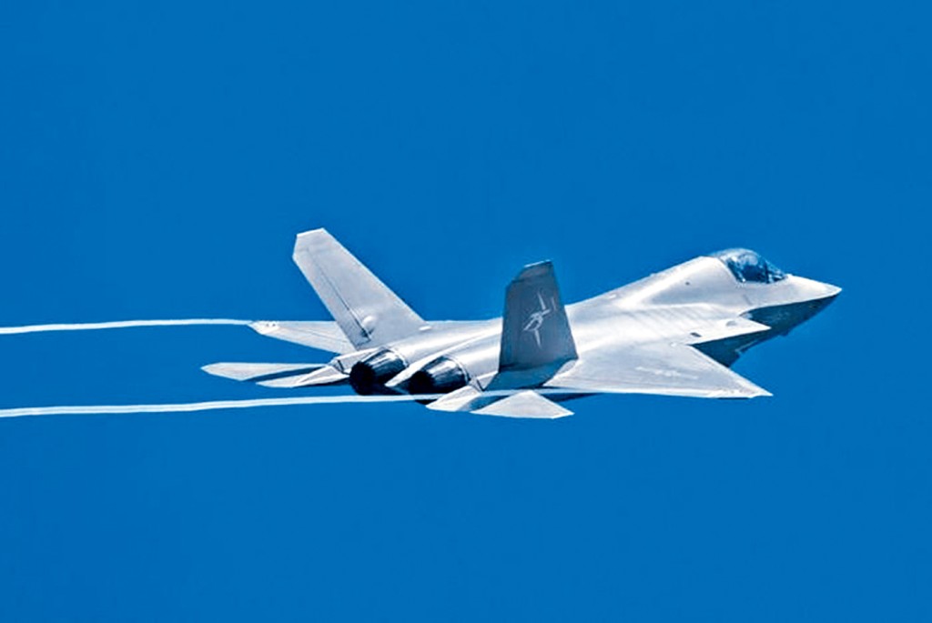 ▲新型隱形戰機殲-35A昨日現身珠海上空。