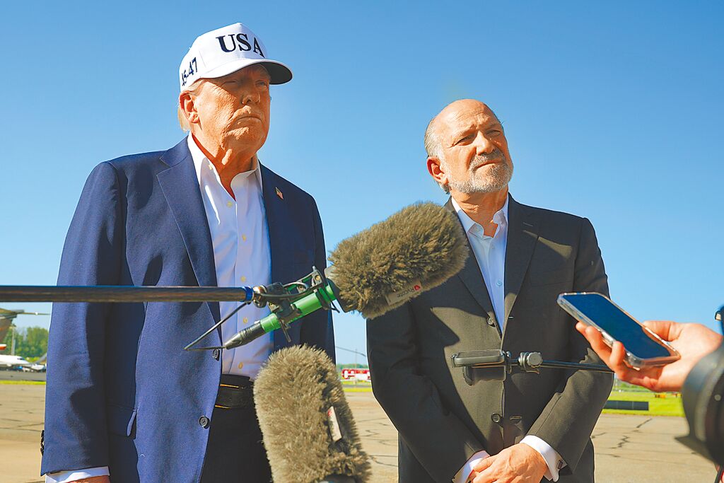 ▲圖為特朗普(左)當地時間6日在紐澤西州莫里斯敦與商務部長盧特尼克就關稅談判議題受訪。美聯社