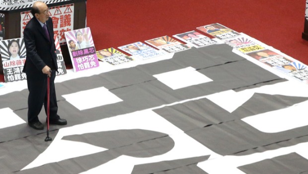 ▲圖為民進黨“立委”過去在“立法院”議場中央布置的“罷”字。(示意圖/中時資料照)