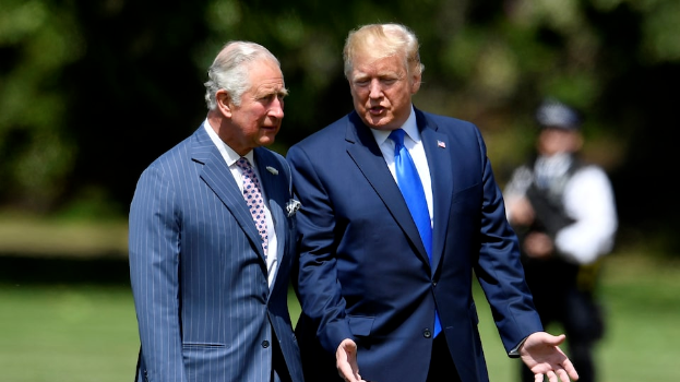 ▲2019年6月,特朗普(右)在白金漢宮與時任王儲查爾斯王子會面。圖源:英媒