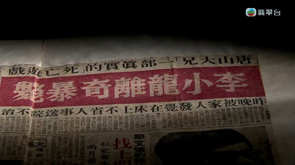 方東升團隊找到李小龍胞弟李振輝接受訪問,他表示得悉哥哥死訊時,他正身處美國。他收到朋友通知,更一度以為朋友開了一個離譜的玩笑,看電視臺新聞報導才知道是事實。節目中曝光大量李小龍生前片段,包括他在《歡樂今宵》表演功夫的影片,以及在李小龍離世后,訪問嘉禾電影負責人鄒文懷的片段。此外,方東升團隊找出當年李小龍死后翌日的新聞報導,指李小龍在九龍塘金巴倫道一個單位內過身。報導引述鄒文懷指,當日他與外國朋友本來約了李小龍在尖沙咀吃晚飯,卻收到李小龍太太蓮達的來電,指李小龍昏迷,鄒文懷到李小龍家中,送他到浸會醫院,再用私家車轉送他到伊利沙伯醫院。但幾日后,事件出現戲劇性發展,有傳媒查到白車出車紀錄,指李小龍是于丁珮家中被送往醫院。