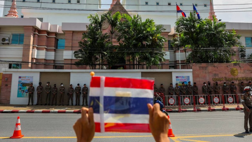 泰國和柬埔寨早前爆發邊境沖突后,關系持續惡化。泰國指,23日有士兵在邊境遭新埋放地雷炸斷腳,決定調低與柬國外交關系等級召回泰國駐柬埔寨大使,驅逐柬埔寨大使出境等作報復。
