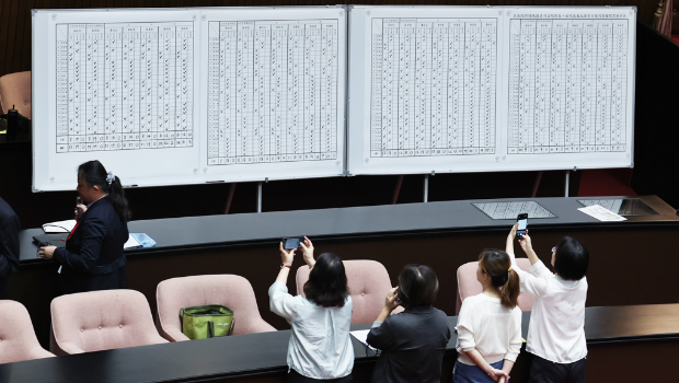 ▲“立法院”25日院會進行“大法官”人事同意權投票,開票結果,所有被提名人皆未過關。(中時新聞網)