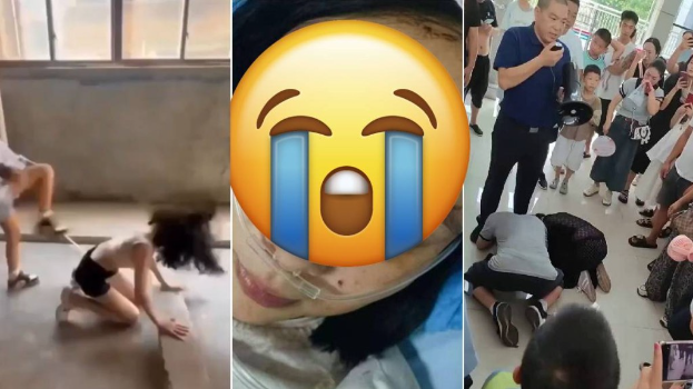 ▲被虐打4小時的賴姓少女的父母,無聲哭跪官員求公道。X
